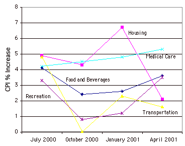in five components of the CPI. The figure makes it easy to see that medical costs