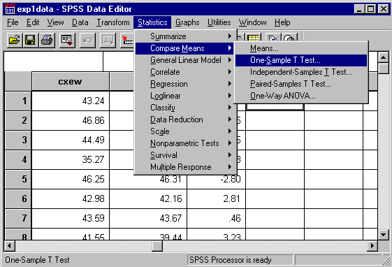 t-test. Go to the "Statistics" menu and choose the "Compare