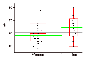 When points in a graph are jittered, the are moved horizontally so that all the points can be seen and none are hidden due to overlapping values. An example is shown below: