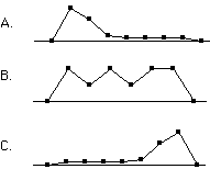 11. Which of the frequency polygons has a large positive skew? Which has a large