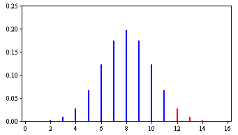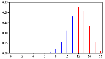 Figure 2. The binomial distribution for N = 16 and π = 0.75.