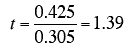upper limit: 0.425 + (3.182)(0.305) = 1.40