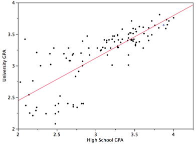 a predicted Y (called Y') of 1.21. Therefore, its error of prediction is -0.21.