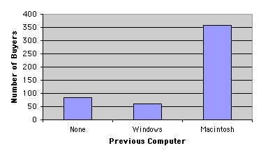 1 shows how many purchasers of iMac computers were previous Macintosh