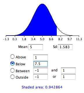 - Find a Z score for 7.5 using the formula Z = (7.5 - 5)/1.5811