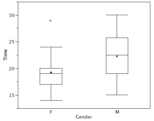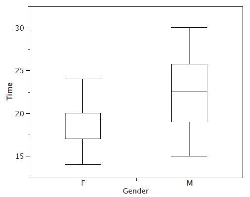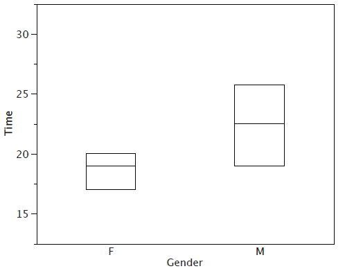 and 20 seconds, whereas half the men's times are between 19 and 25.5. We
