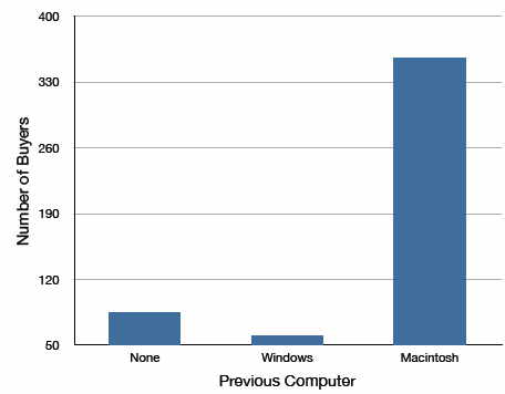 Figure 2. Bar chart of iMac purchases as a function of previous computer ownership.