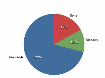 The pie chart in Figure 1 shows the results of the iMac study. In a pie chart, each category is represented by a slice of the pie. The area of the slice is proportional to the percentage of responses in the category. This is simply the relative frequency multiplied by 100. Although most iMac purchasers were Macintosh owners, Apple was encouraged by the 12% of purchasers who were former Windows users, and by the 17% of purchasers who were buying a computer for the first time.