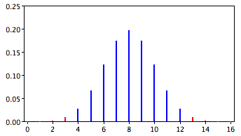 is 0.0106. Figure 1 shows a graph of the binomial distribution. The red bars