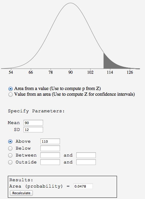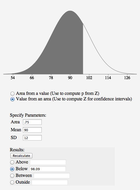 of 12. You enter the parameters as shown in Figure 5 and find that the area below 98.09 is 0.75.