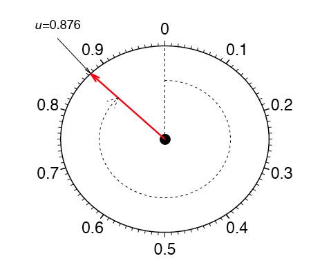 As an example, consider data measured from a physical device such as the spinner depicted in Figure 1. The red arrow is spun around the center, and when the arrow stops spinning, the number between 0 and 1 is recorded. Can we determine if the spinner is fair?