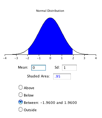 is 0.95 and indicating that you want the area to be between the