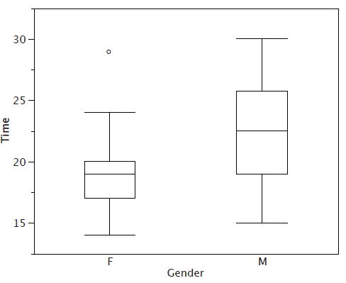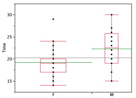 and 20 seconds, whereas half the men's times are between 19 and 25.5. We