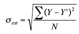 Note the similarity of the formula for σest to the formula for σ.  It turns out that σest is the standard deviation of the errors of prediction (each Y - Y' is an error of prediction).