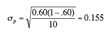 distribution of p is 0.60. The standard error is