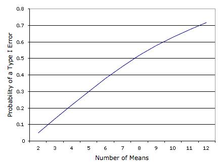 about 0.70 that at least one of the 66 comparisons among means