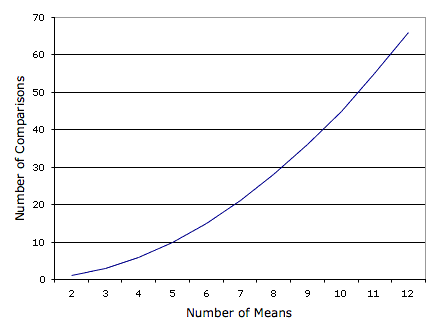 then only one comparison can be made. If there are 12 means, then